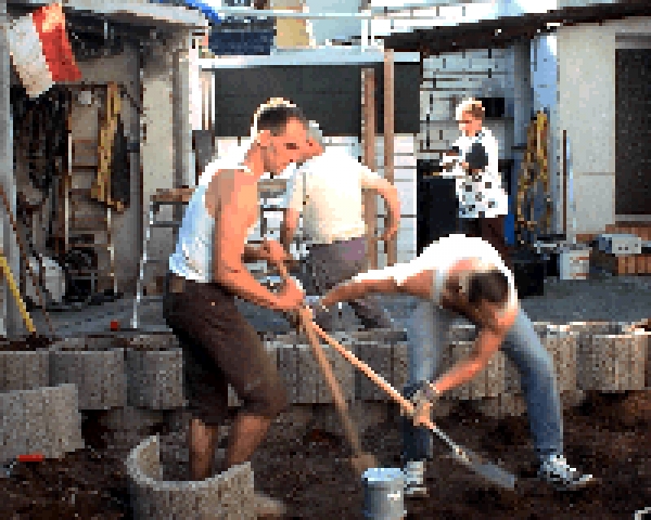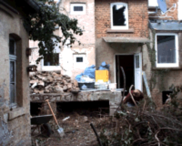 | Nach 15 Tonnen Bauschutt, 2,5 Tonnen Holz und weiteren 400 Stunden ist es nun soweit! Robi wird im laufe der Woche einziehen! das Bad ist fertig (bis auf die Duschwand) die Küche kann man auch schon fast benutzen. Robi´s und Dirk´s Zimmer sind fertig Tapeziert und nach größen Diskusionen hält auch die Holzdecke (Dank Marc, Rene und Stefan). Der Computerraum ist fertig und auch schon fast aufgeräumt (der erste Netzwerkabend war gestern!). Jetzt fehlt noch der Dachboden und das EG. ABER WIR SIND GLÜCKLICH! Wir haben unser Ziehl fast erreicht, zum 01.04.2002 im Haus zu wohnen. DANKE AN ALLE DIE UNS BIS JETZT GEHOLFEN HABEN und uns hoffentlich auch noch bis zum schluß helfen! DANKE!!! |