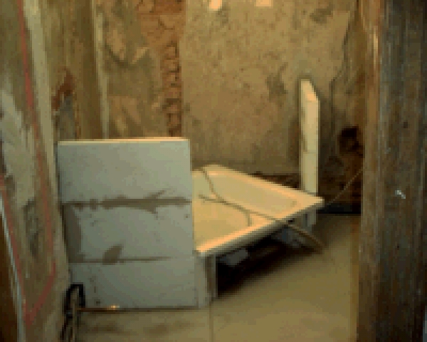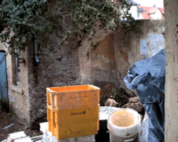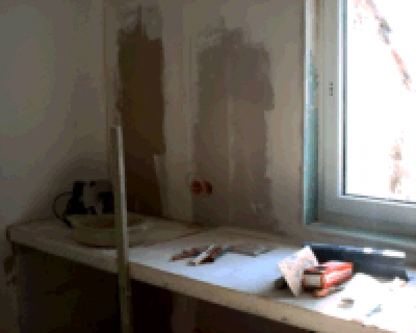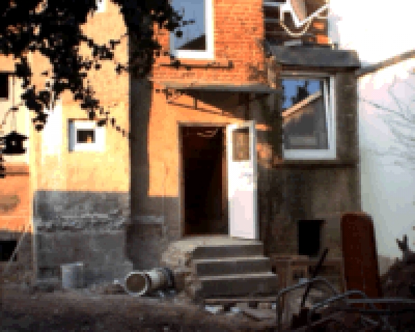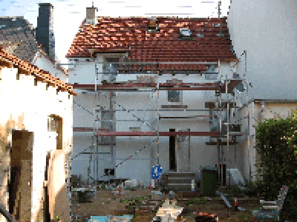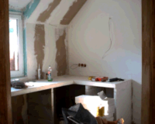 | Die Heizung läuft jetzt in den richtigen Rohren, der Laden muß nicht mehr mit Strom Heizen. Außerdem sind der Dachboden und das erste Obergeschoss auf dem besten Wege zum Einzug. In der Küche ist sogar schon die Arbeitsplatte zu erkennen! Seit Donnerstag haben wir auch die neuen Fenster und eine neue Tür zum Garten (das Bild ist leider nix geworden). Die Sprechanlage hängt auch schon. |