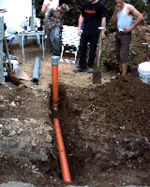 | Bei dem schönen Wetter haben wir lieber im Garten, als im Haus weiter gemacht! Also nach dem das Treppenhaus fast fertig war, haben wir alle Rohre im Garten verlegt und unsere Pflanzsteine gesetzt. Es gibt mal wieder Bilder, viel Spaß damit!!! |